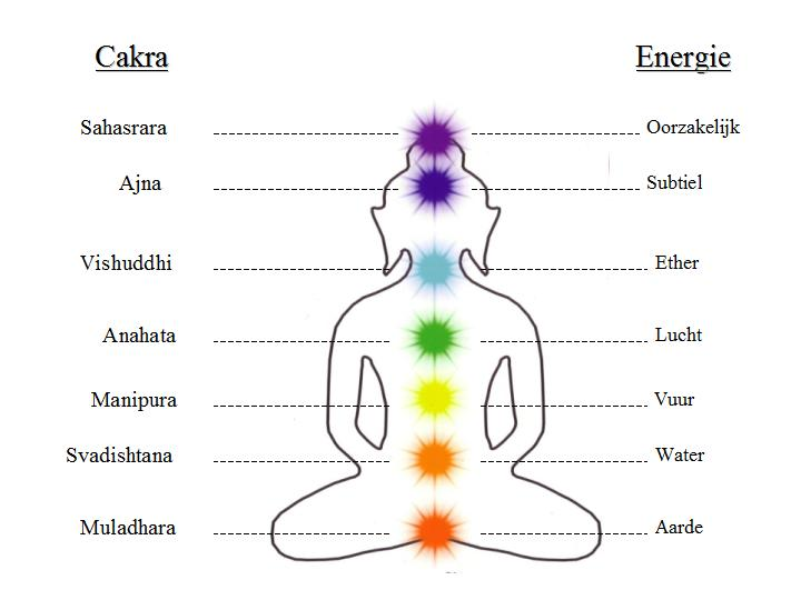 Er zijn 7 hoofd-cakra’s. Elke cakra regelt de energiestromingen in een Sarira. De namen van deze cakra’s zijn:
